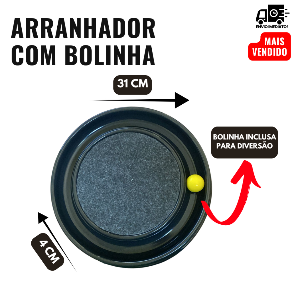 O Arranhador Redondo Interativo com Bolinha foi criado para unir diversão, relaxamento e cuidado com as garras, tudo em um único produto.