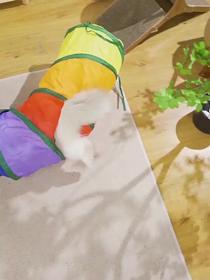 Com design em formato de túnel e múltiplas entradas, o brinquedo permite que o gato entre, saia, se esconda e explore livremente 🐾.